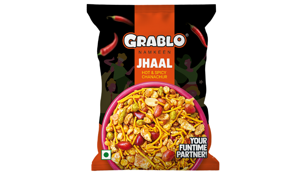Grablo Jhaal Namkeen is a fiery Indian snack crafted from a mix of crunchy sev, peanuts, puffed lentils, and chickpea bits, all tossed in a zesty blend of spices. Known for its bold, hot, and tangy flavors, this spicy chanachur is perfect for enjoying on its own or as a flavorful addition to your favorite snacks and meals.