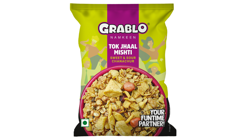 Grablo Tok Jhaal Mishti Namkeen offers a vibrant mix of crunchy sev, peanuts, puffed lentils, and chickpea bits, perfectly seasoned with a balanced blend of sweet, tangy, and mildly spicy flavors. This sweet & sour chanachur delivers a delightful burst of taste in every bite, making it an ideal companion for tea-time snacking or for adding an extra zing to your favorite chaat and munching moments.