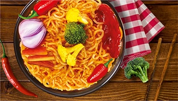 Our veggie flavour ramen is like a garden party in a bowl, full of different veggies and tasty broth. It’s the perfect pick for a quick, healthy meal that’s fun to eat.